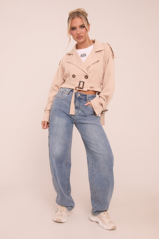 Beige Double Breasted Tie Sleeve Longline Oversized Trench Coat - Annmarie