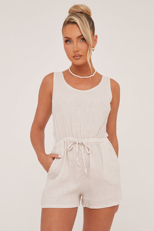 Beige Elasticated Waist Tie Back Playsuit - Jovee