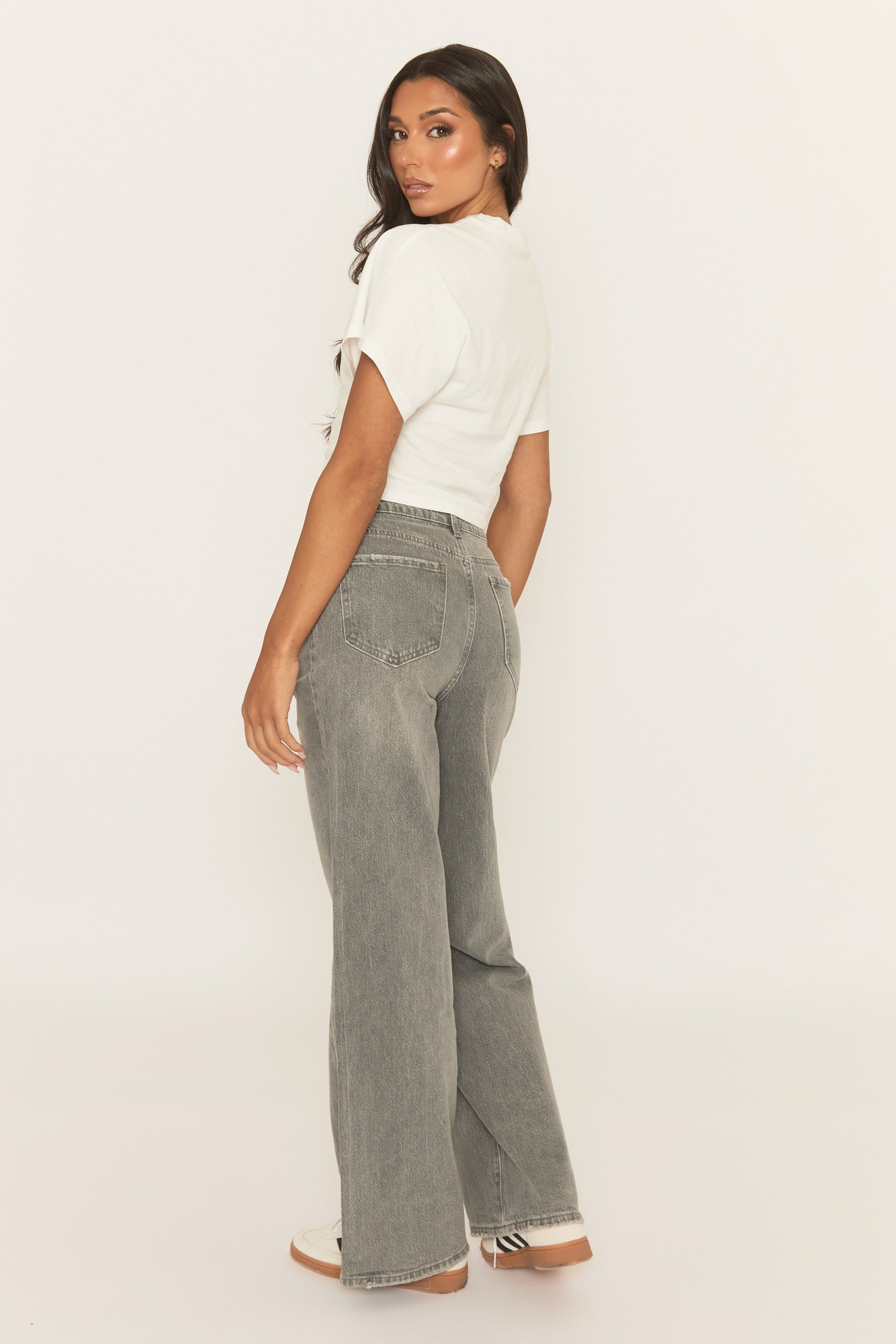 Acid Wash Grey Wide Leg Jeans - Jelara
