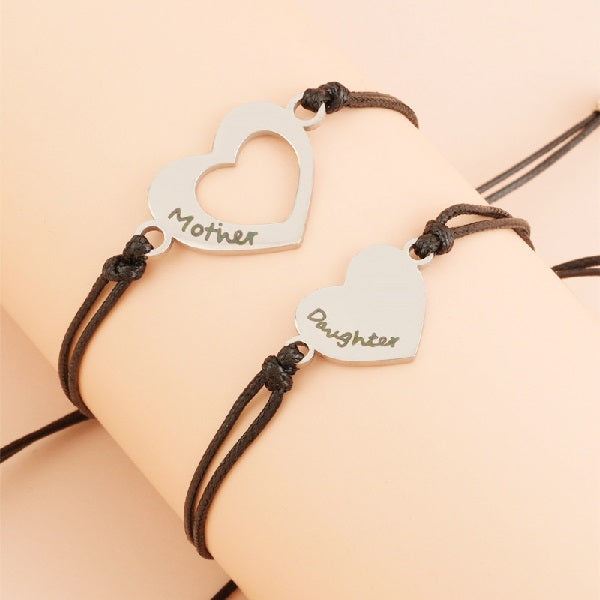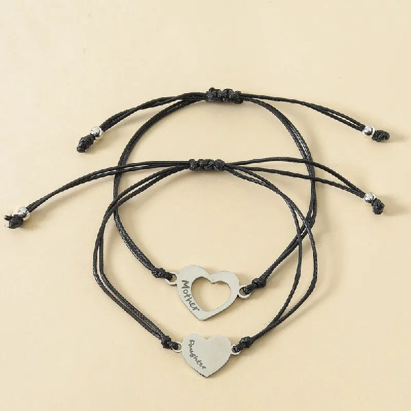 Adjustable Mother and Daughter Heart Wish Bracelets with Presentation Card - Black
