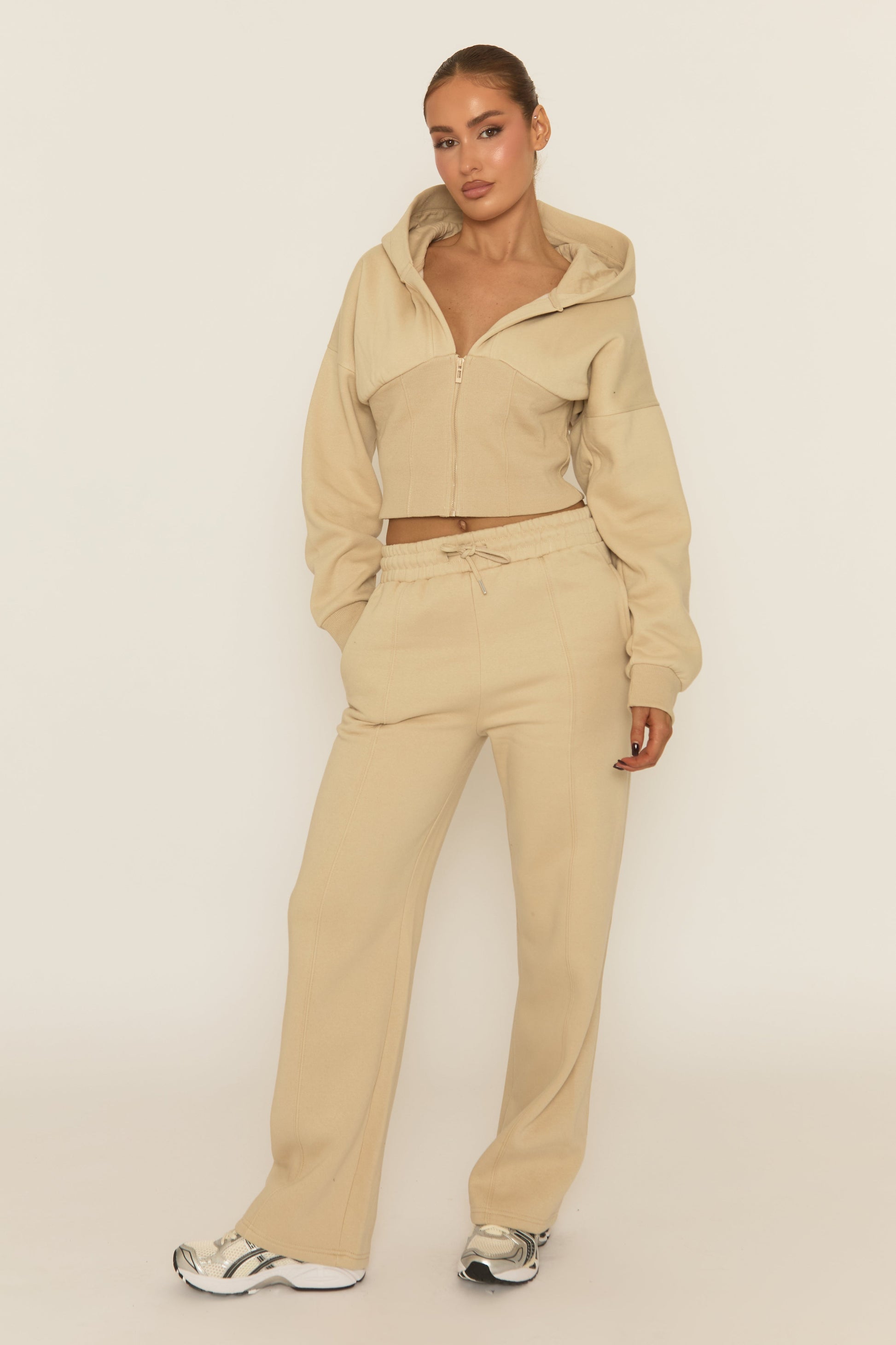 Beige Corset Fit Hoodie and Jogger Loungewear Set